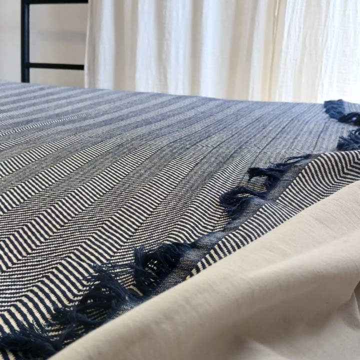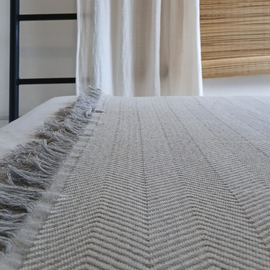 Manta o pie de cama composición algodón y lino, entramado nativa.